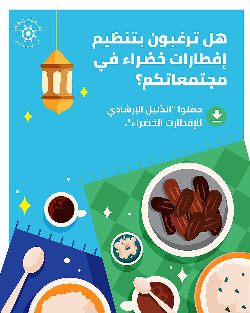 مع ازدياد الوعي عالميًا بضرورة ترشيد استخدام الموارد، يختار العديد من المسلمين حول العالم اعتماد الاستدامة من خلال إقامة الإفطارات الخضراء. وتعكس هذه الإفطارات السّلوكيّات اليوميّة البسيطة التيّ يفهمها الكثيرون منّا ويطبقونّها بالفعل مثل استهلاك المياه بوعي والحدّ من هدر الطعام والتّوجّه نحو عدم استخدام الموّاد البلاستيكيّة.